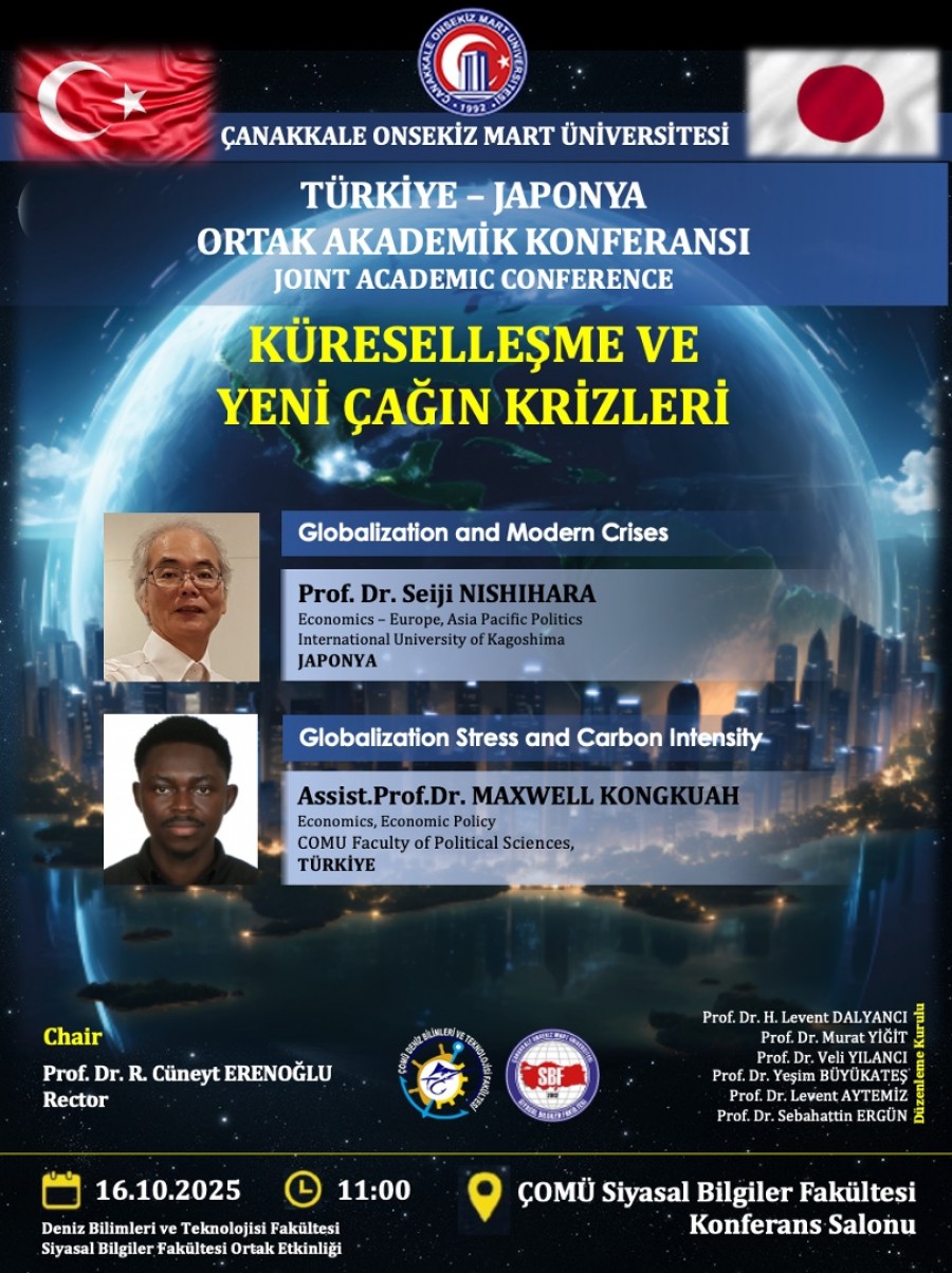 Çanakkale Onsekiz Mart Üniversitesi ile Japonya arasında yürütülen akademik iş birliği çerçevesinde, “Küreselleşme ve Yeni Çağın Krizleri” konulu ortak akademik konferans düzenlenecektir.